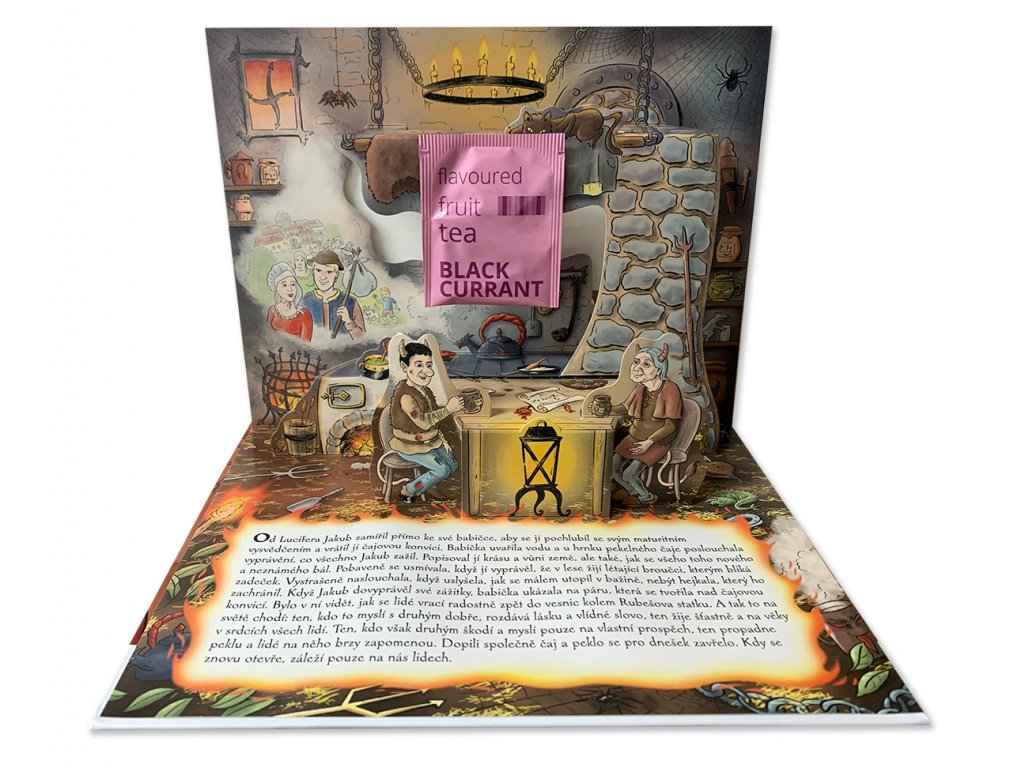 Krásně ilustrovaná 3D pop-up knížka (leporelo), která na šesti prostorově ilustrovaných dvoustranách vypráví pohádku o čertím mladíkovi Jakubovi, ve které svou roli hraje také lahodný čaj vložený uvnitř. Naše druhá Čajová kniha pro děti v řadě po prvních Třech mrazících. Knížku nabízíme v českém, anglickém a německém jazyce - variantu zvolíte níže.