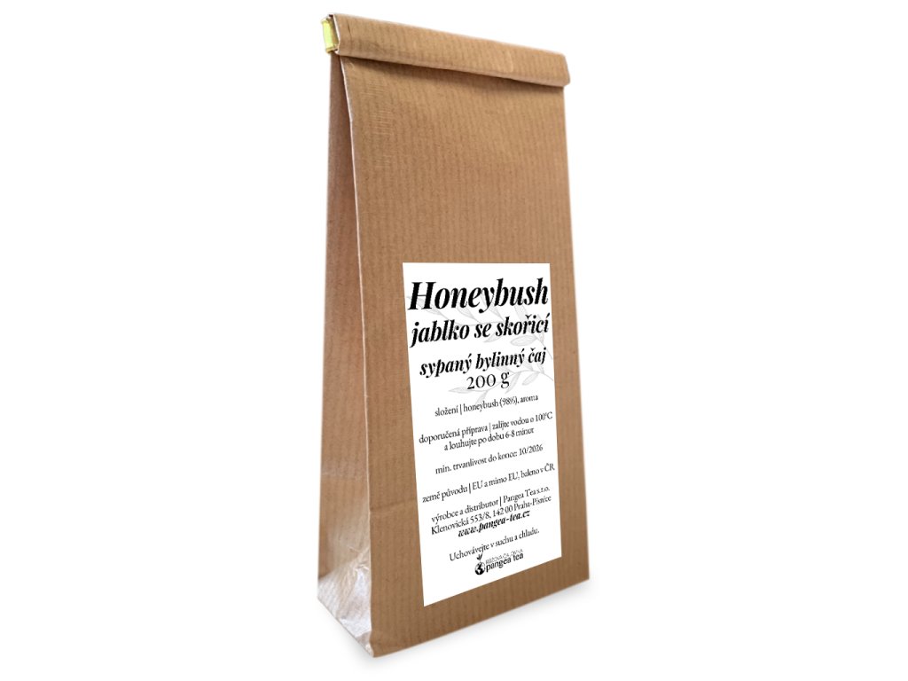 Červený bezkofeinový čaj nečaj doplněný o jemnou chuť a vůni jablka se skořicí. Čaj Honeybush se vyrábí z drobných lístků divoce rostoucího keře Cyclopia intermedia, které obsahují velké množství minerálních látek (železo, vápník, zinek, draslík, hořčík, mangan, měď, sodík) a jejich výluh působí příznivě proti virům, bakteriím a plísním, pomáhá usnadnit odkašlávání, působí příznivě při diabetu a může pomoci při snižování hladiny tuku a cholesterolu v krvi.